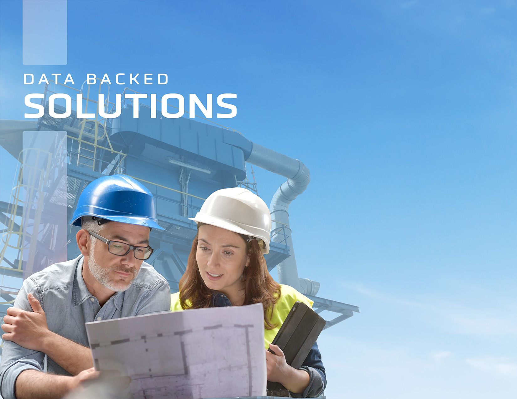 Concept one emphasizes data driven solutions, establishing Aubun as an expert with an innovative mindset. Bold colors paired with a clean sans serif make technical solutions approachable and engaging. A halftone circle icon is used to represent air particles. Product sketches and color opacities are shown to highlight the company's transparency in their practices. which allows them to build trust with their clients.